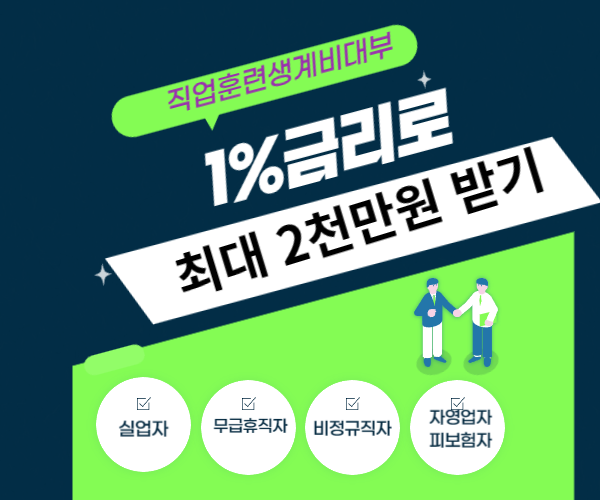 1%의 낮은 초저금리로 직업훈련도 받고 생계비 걱정도 덜 수 있는 직업훈련생계비대부 사업을 강력 추천합니다