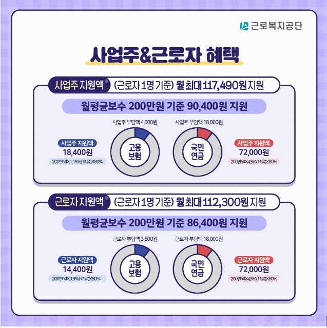 근로자 및 사업주 대상: 월평균 급여가 260만 원 미만인 근로자와 사업주에게 지원됩니다.