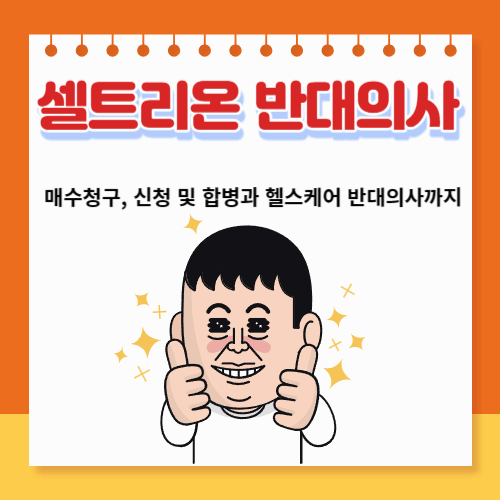 셀트리온의 합병과 관련된 주제는 많은 투자자와 주주들에게 큰 관심사입니다. 셀트리온의 반대의사, 매수청구, 신청 방법, 그리고 헬스케어와의 합병에 대한 반대의사까지의 내용을 상세히 작성하였으니 3분 가량의 시간 투자는 결코 후회없는 선택이 될것입니다.