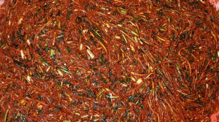 | 양념 | 황태 육수 500cc | 고춧가루, 다진 마늘, 다진 생강, 찹쌀 풀, 새우젓, 멸치 액젓을 섞어 양념을 만듭니다. |