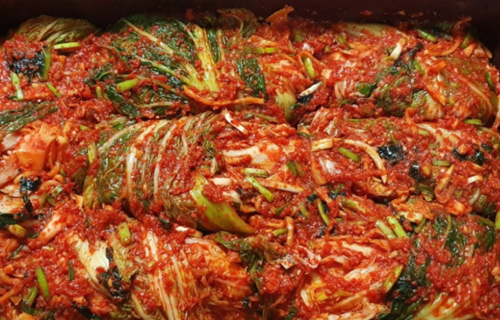 다양한 채소의 조합: 김장김치는 배추 뿐만 아니라 무, 양파, 마늘, 생강 등 다양한 채소와 함께 만들어져 영양가가 높습니다.